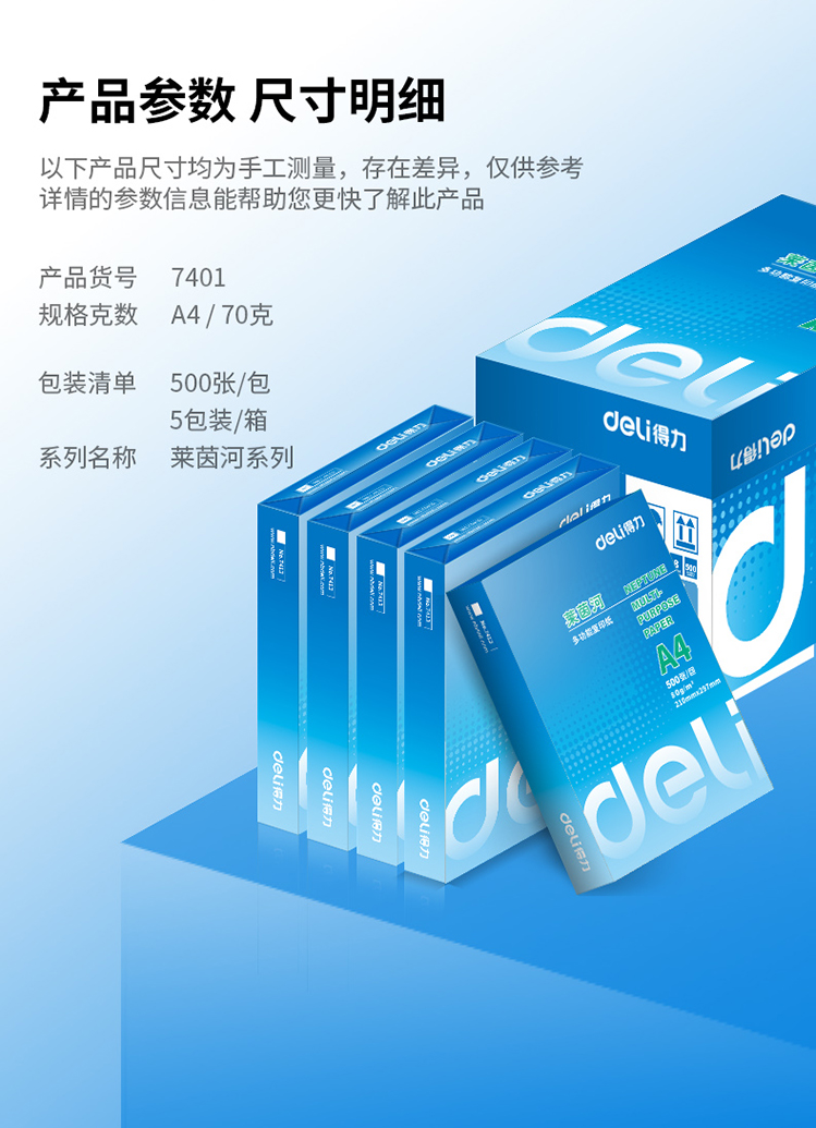 得力/deli 7401 復印紙 萊茵河 70g 500張/包
