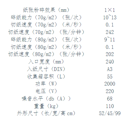 碎紙寬度(mm)  :   240